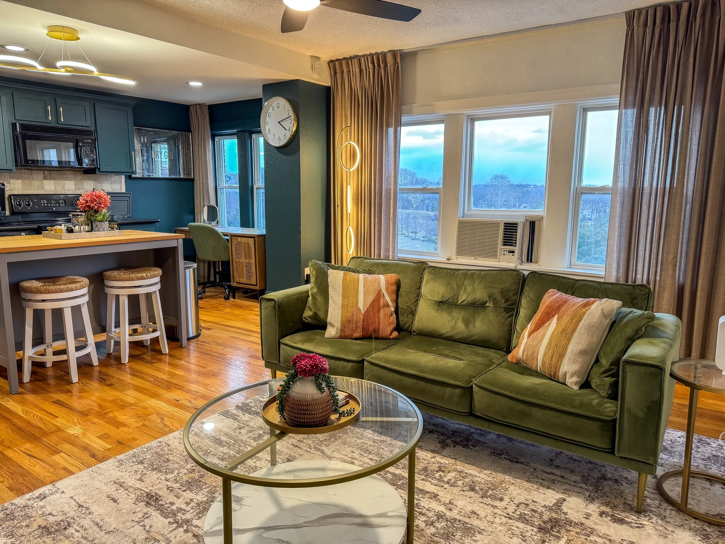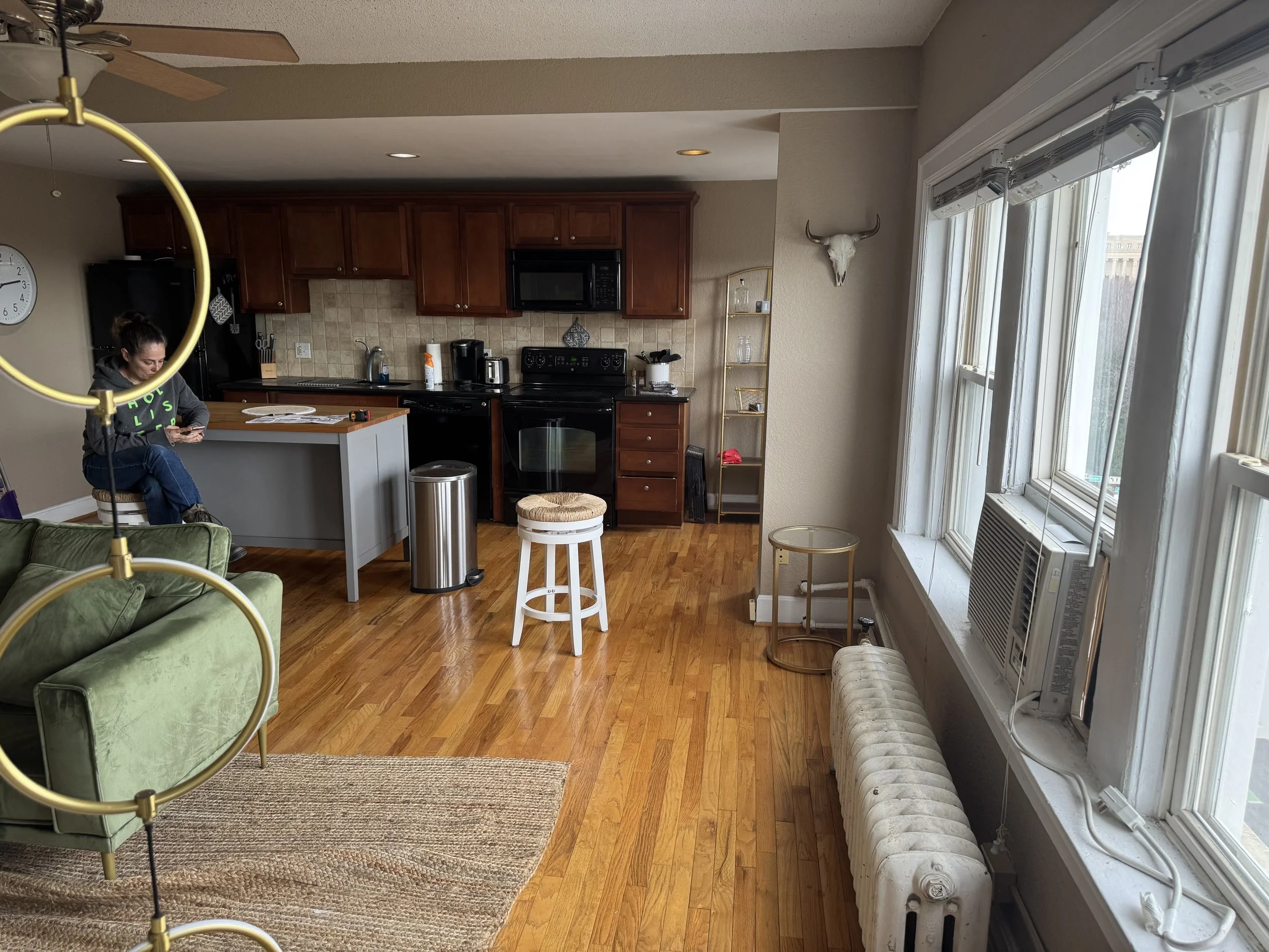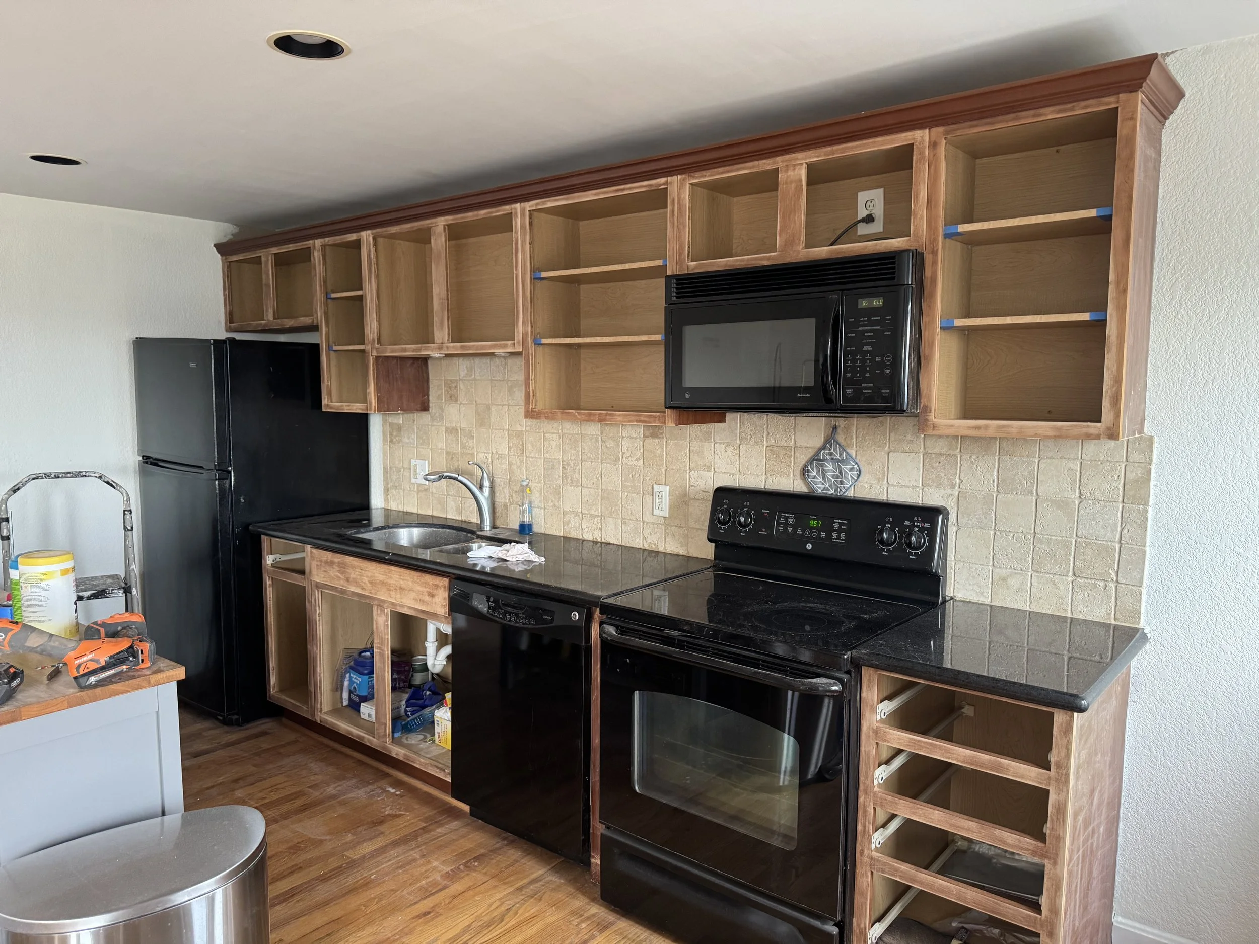 While this was more of a “face-lift” project, the end result is undeniably bold and unique. The dark, moody paint replaced the outdated and worn original cabinetry, allowing this space to feel modern and more visually striking. Pairing that with the updated cabinet pulls and gold faucet really elevated this space from its original state.
